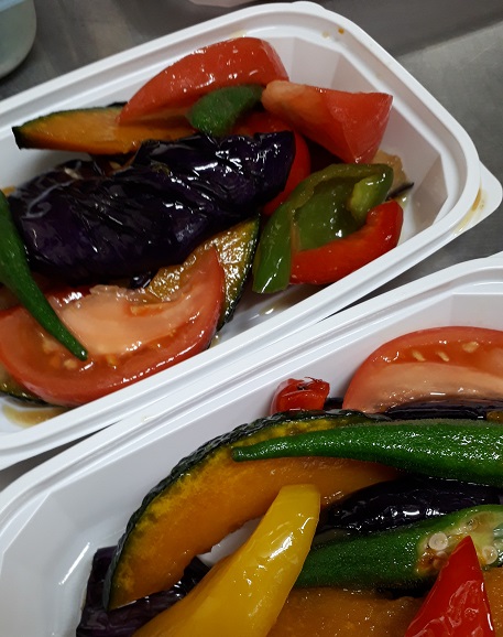 参考までに、夏野菜の揚げびたし、