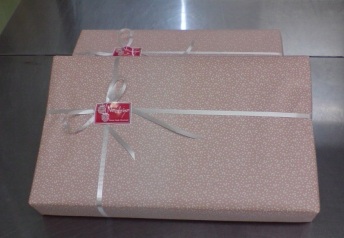 贈答用に…とビスコッティのセットの予約がありました。 米粉消費拡大で、国内自給率up!! こだわりのお菓子です。 写真左が中身、右が包装したものです。 ごま・くるみ・ココナッツの3種です。 お店には、カップに入ってならんでいます。