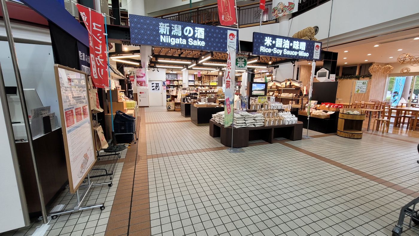 道の駅「にいがた・ふるさと村」は1991年の開業で、植物園から、巨大な物産展、観光情報センター、レストラン街と、かなりのスケールの大きさ。