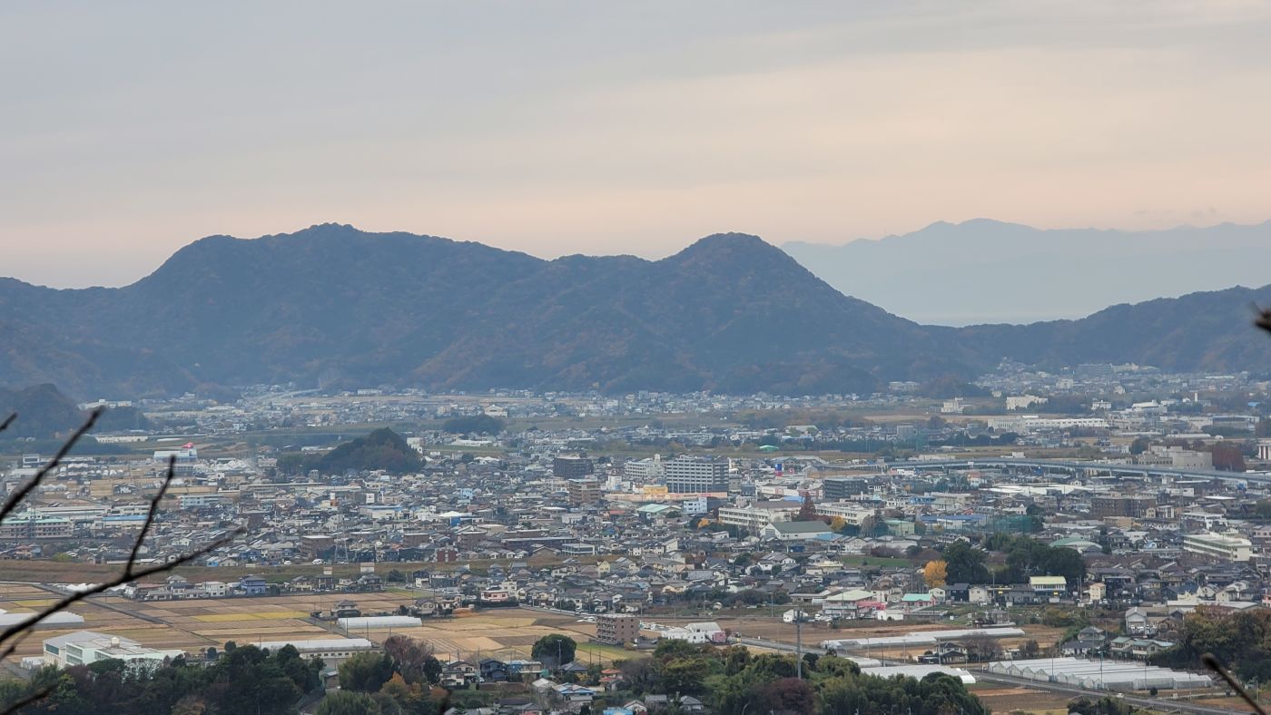1時間ほどで頂上へ。標高は167メートル。伊豆の国市が一望できる。