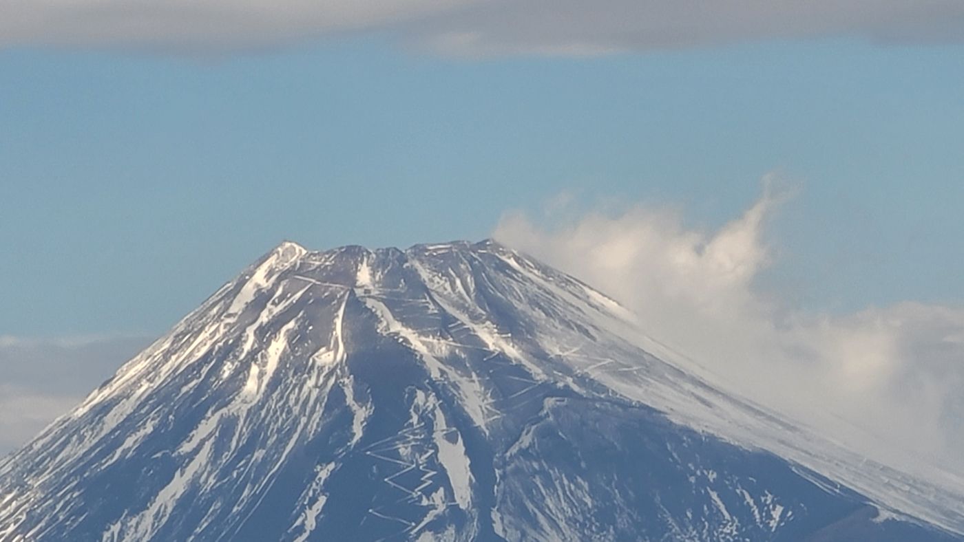 快晴といえず、雲と霞がかかっているけど、見える富士山の美しさは別格。