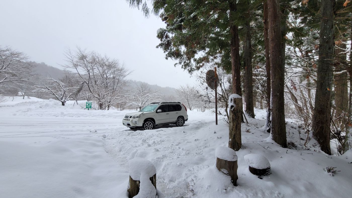 雪に埋まっていたけど、水量は豊か。70リットル汲ませてもらった。