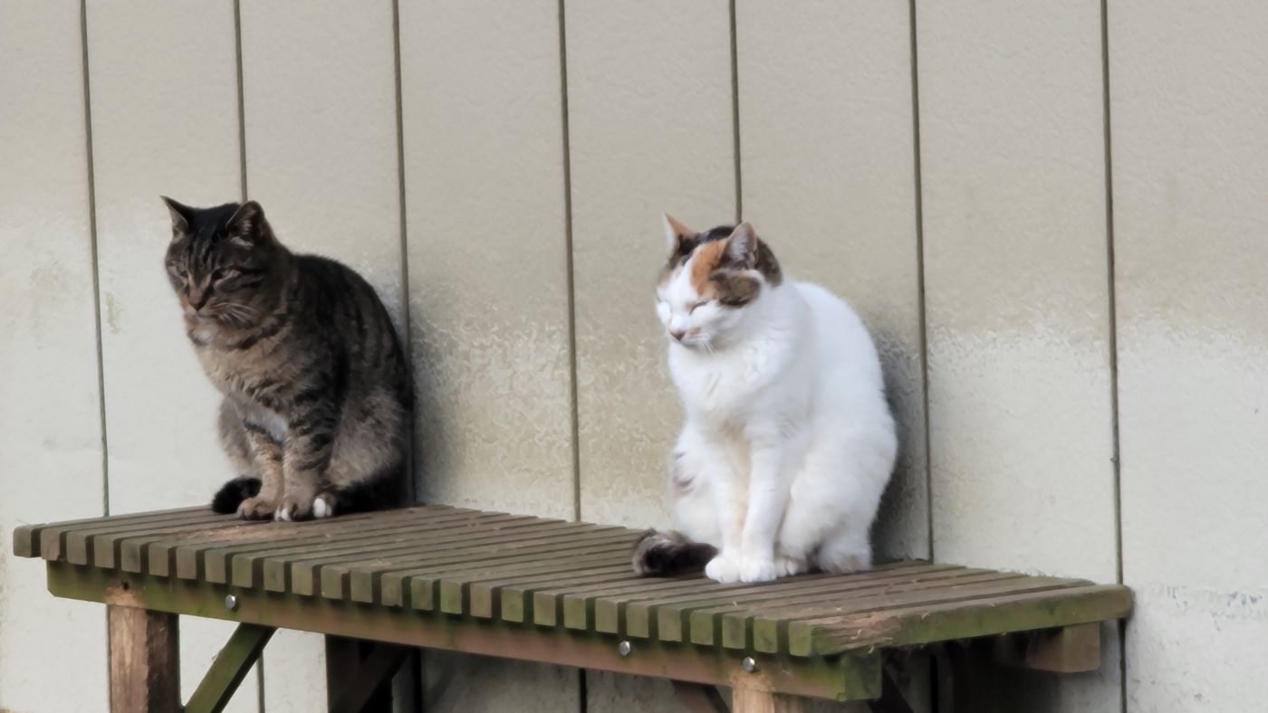 一般に白猫は人見知り、黒猫は人懐っこいといわれるけど、チュール食べてくれたのはたしかに黒猫の方。