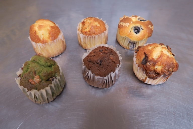 チーズのマフィン、ココアのマフィン、黒糖のマフィンの6種類