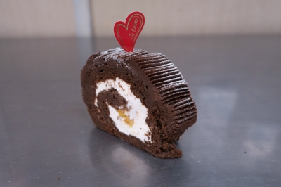 ショコラロールは蒸し焼きにしたショコラ生地に生クリームと栗をロールして
