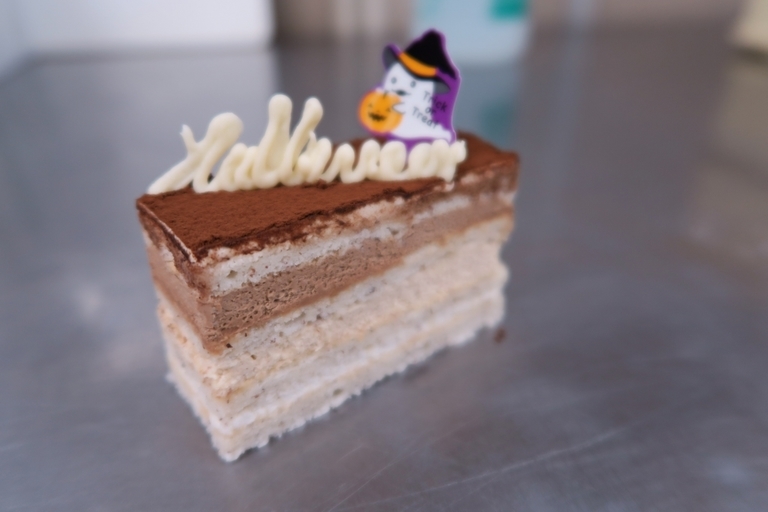 ボストックはショコラ生地と2種類のクッキー生地を7層にチョコレートで