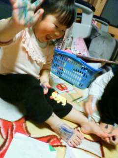 教えた訳でなく、私が描いてるのを見た訳でもなく、幼稚園で誰かが描いてるのを見て、覚えたのでしょうね。