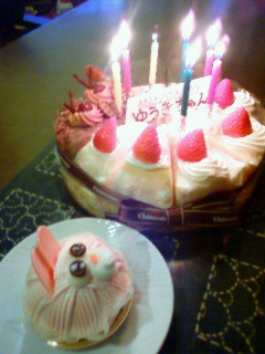 ゆぅは、自分用にウサギちゃんのケーキを買っておきながら、 途中で「いらな〜い!!」・・・−−;はぁ〜もったいない。 みぃまで。