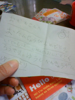 おばちゃんが作ってきてくれたキンピラが、 とても嬉しかった。 それに、プレゼントまで。 ごめんね、おばちゃん´^` せっかく呼んでおいて、盛り上がりに欠ける食事になっちゃって。