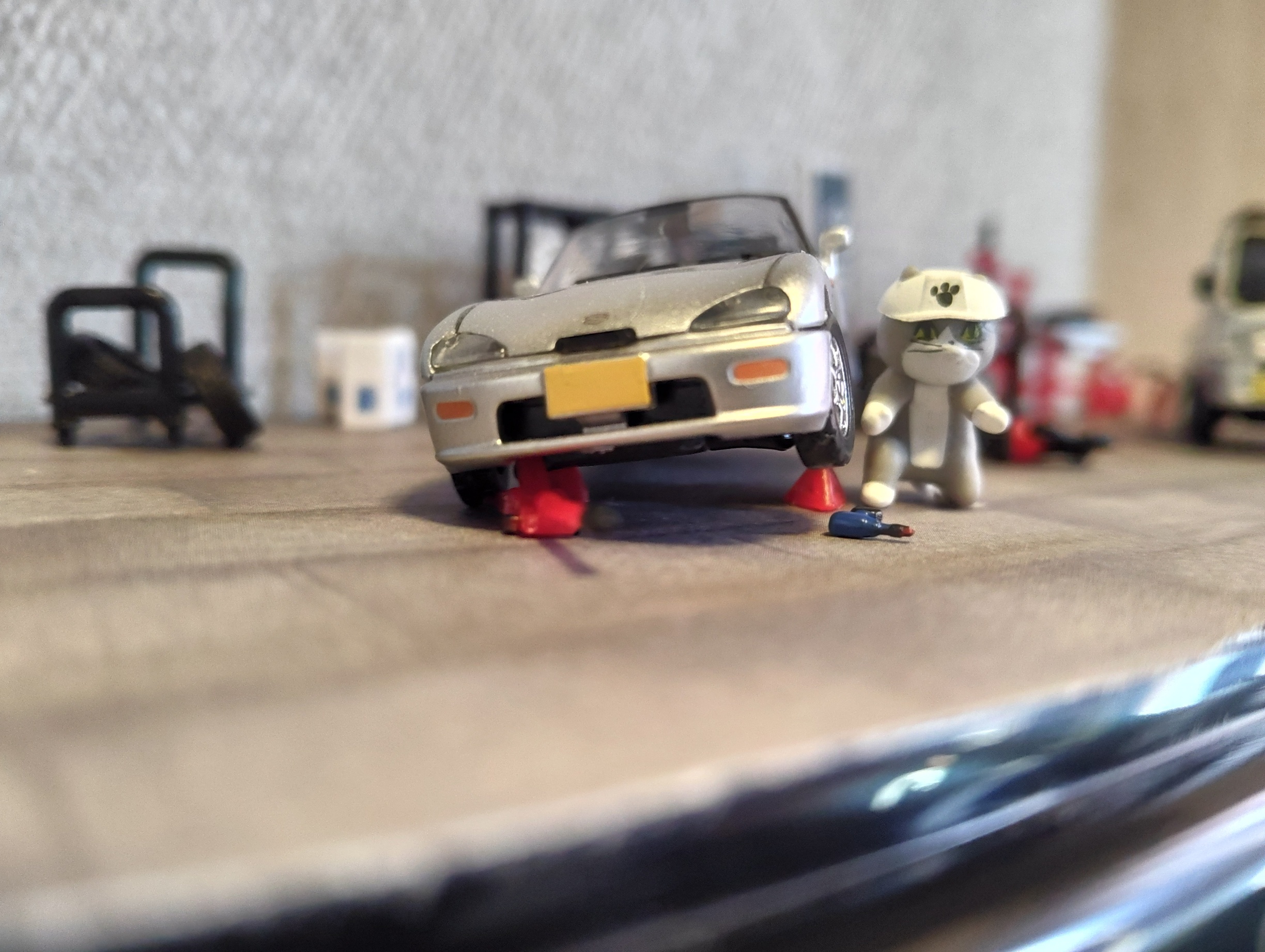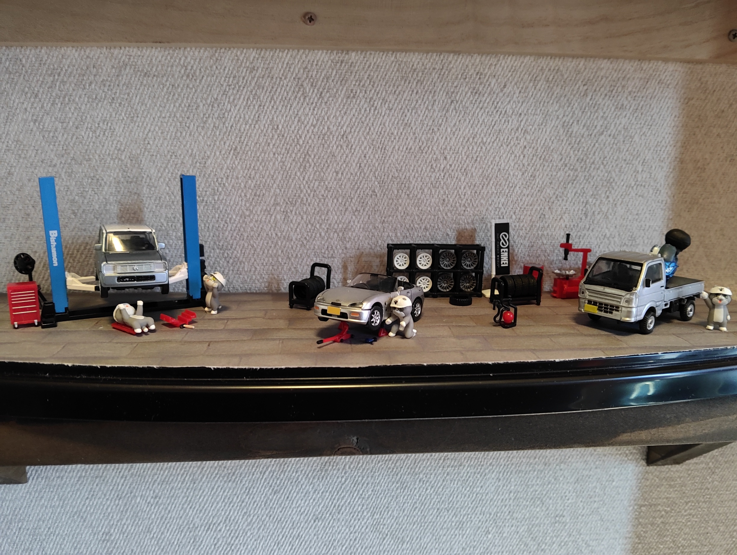 帰って点検すると、最近整備した「タウンガレージツール+仕事猫」の展示に崩落が起きていて、「リアル現場猫案件」になっていましたよ。