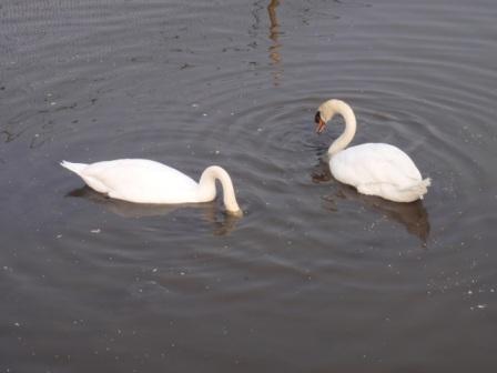 そして、居着き(?)の白鳥が2羽、せわしなく水面下に顔を突っ込んでいました。