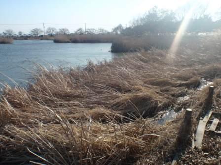 岸辺のアシ(?)はすっかり枯れてしまって、寒々しい“冬”を感じます。