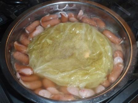 キャベツの他に人参、玉ねぎ、ウィンナーも入れて、