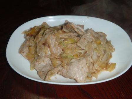 冷蔵庫にあった生姜焼用の豚肉と長ネギで炒め物にしてみました。