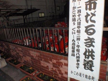 だるまと言えば色は赤ですが、最近(?)は白・ピンク・黄色・水色・緑・・・と沢山の色のだるまが売られていて、交通安全、家内安全、商売繁盛、恋愛、合格祈願・・・と目的別にだるまの色が異なっているお店がありました。