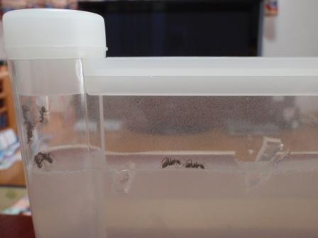 子どもたちと騒ぎながら、何とか捕まえてアリケースに入れることができました。
