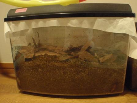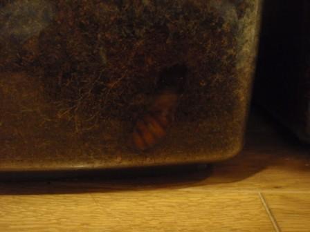 透明の飼育水槽で、幸いにも隅っこに陣取ってくれたので目に見える形となりました。