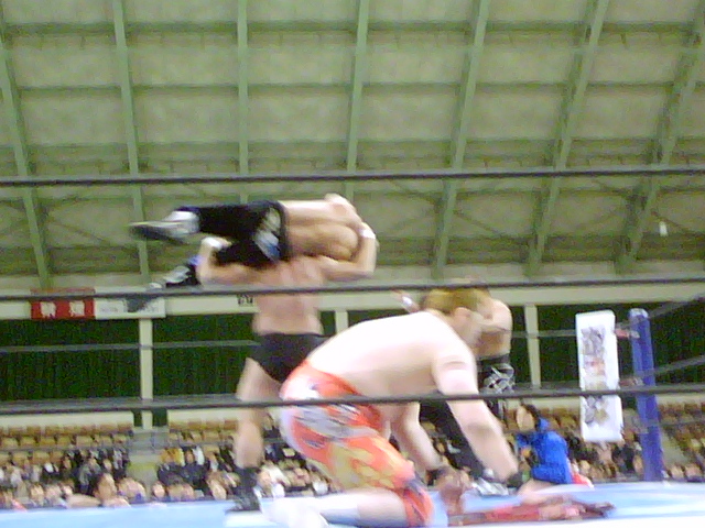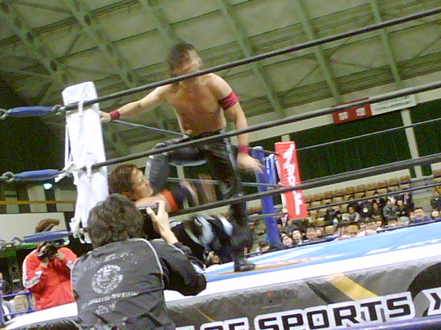 コーナーマットを一瞬で外す矢野の技は伝統芸並みの素晴らしさ。
