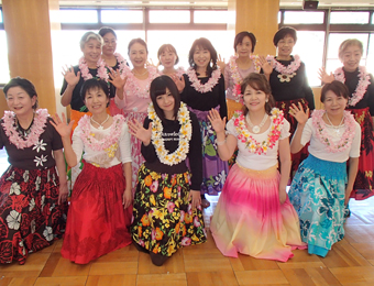こちらは立ち上げて3年の新しいフラダンスサークルです。 現在、50代〜70代の女性15人が所属しています! 市のイベントや公民館祭りなど、年3回、発表を行っているそうですよ(*^^*)