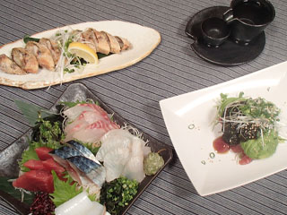 今回試食させて頂いたのが ・お刺身の盛り合わせ ・さんまの薩摩はさみ揚げ ・まぐろとアボカドの自家製海苔ソース掛け