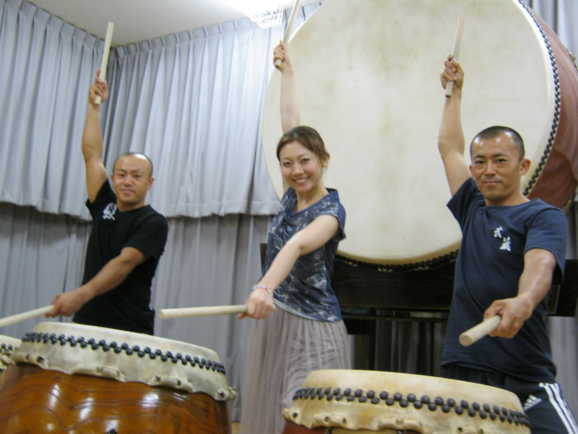 いい汗もかき、全身の筋肉を使うのですごく良い運動になり、何より楽しい! 皆さんも、和太鼓の音色、力強く、楽しさに触れてみて下さい♪