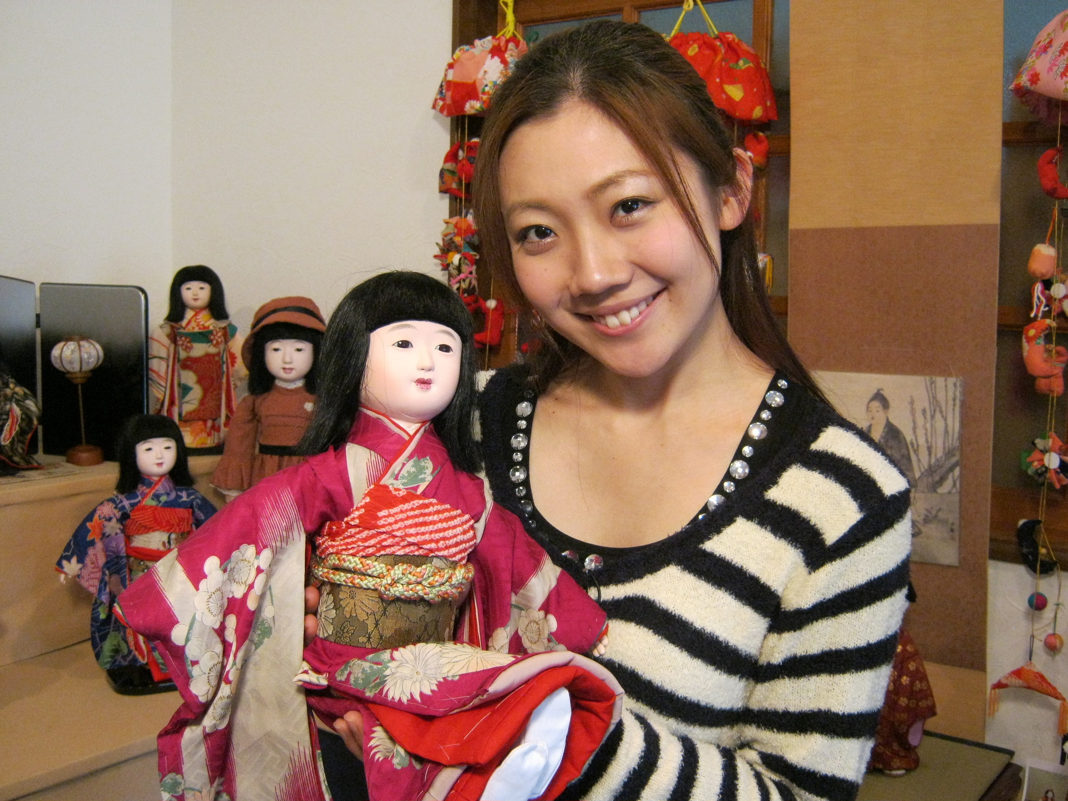 日本人形は全て鑑賞用と思っていましたが、市松人形はお座りさせることもでき、着せ替えや抱っこもできるので