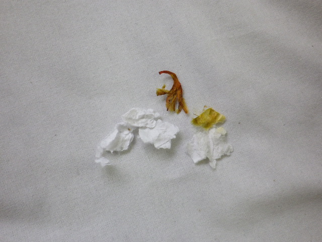 ポケットの中から紙ゴミと一緒に花びらや茎が出ていました。