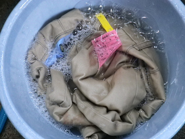 その後マルセル石鹸でシミ抜きして丸洗いします。